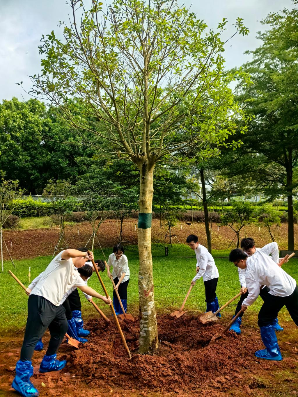 仪式结束后,为积极响应团省委动员全省团员在“绿美广东”生态建设中勇当生力军和突击队号召,新团员代表们前往海洋广场一侧开展“入团种棵树”主题活动。团员青年们以实际行动践行“绿水青山就是金山银山”的理念,为生态建设注入青春力量,承担起新时代赋予青年团员的责任和使命。活动现场,学校第十届“榜样之星”团队和个人开展了宣讲活动。