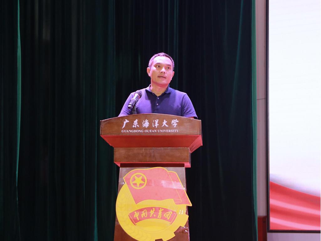杨家昌上台致辞。他提到中国共产主义青年团是中国共产党领导的先进青年的群团组织,是广大青年在实践中学习中国特色社会主义和共产主义的学校,是中国共产党的助手和后备军。团支书在基层团组织中肩负重任,寄予新生团支书能够在培训班中认真学习团务知识、提升自身思想政治觉悟的希望并鼓励新生团支书联合开展丰富多彩的主题团日、积极探索主题团日创新模式。杨家昌提出,为增强团支书的实践能力和团队协作能力,校团委将在本期培训班为大家安排更多丰富多彩、形式创新的培训活动,希望2024级新生团支书能够以此次培训班为契机,用实际行动诠释海大青年的责任与担当。