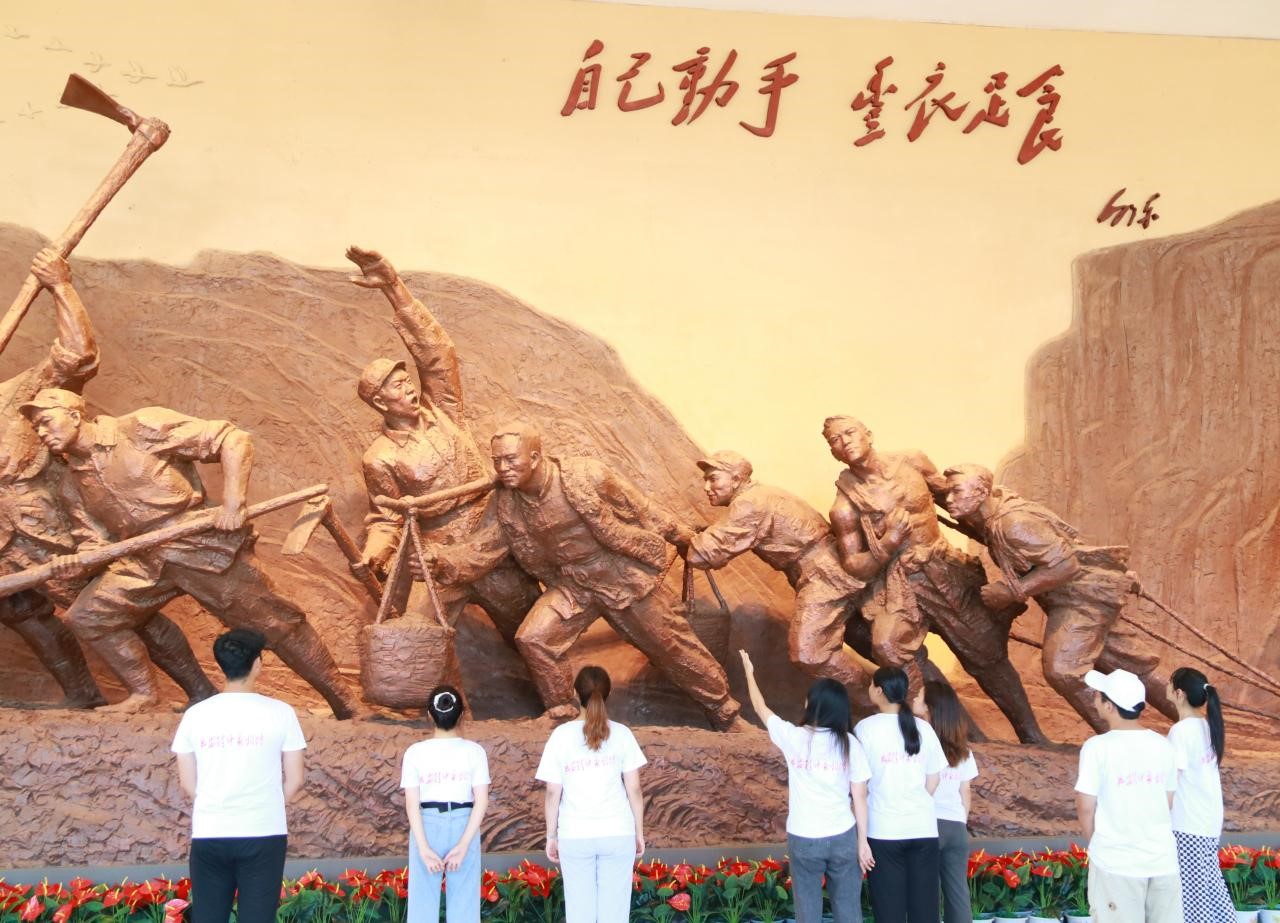 “同学们,刚刚大家看到的那张小木桌就是毛主席创作《沁园春·雪》时用的,你们知道这首词的创作故事吗?”在延安革命纪念馆内,实践团队队长张鹏亮带领大家参观完展览后,现场讲起了党史微课,引得现场游客掌声阵阵。伟德国际1946源于英国延安实践团队坚持“边走、边看、边学、边讲”的原则,在实践中感悟真理,在行走中赓续红色血脉。南泥湾综合示范田里,团队成员蹲在地上、手执禾苗、满手泥巴就地开展实地调研活动,来自农学专业的队员向队员们讲解了水稻的相关知识,包括陕北稻田的特征、南北方稻田的差异等。“我回去后要利用自己的专业特长,给南泥湾设计一批特色的文创产品”“南泥湾真的太美了,我要把在这里看到的都记录下来回去后写成文学作品”……看着眼前如画般的美景,回想起革命先辈们靠着“自己动手,丰衣足食”的精神开垦荒地、屯田种粮的艰苦岁月,实践队员们热情高涨,都想为南泥湾的发展贡献自己的力量。
