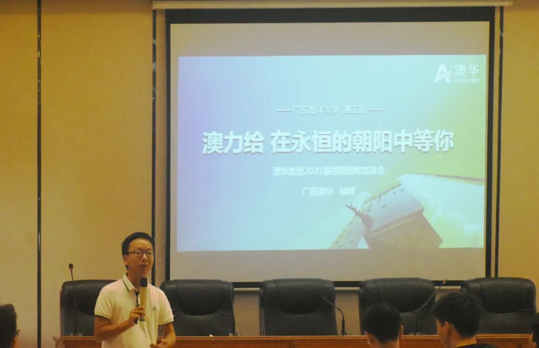 澳华集团宣讲人从行业介绍、企业概况、优秀校友、薪资福利、应聘指引五个方面对澳华集团进行了详细介绍。