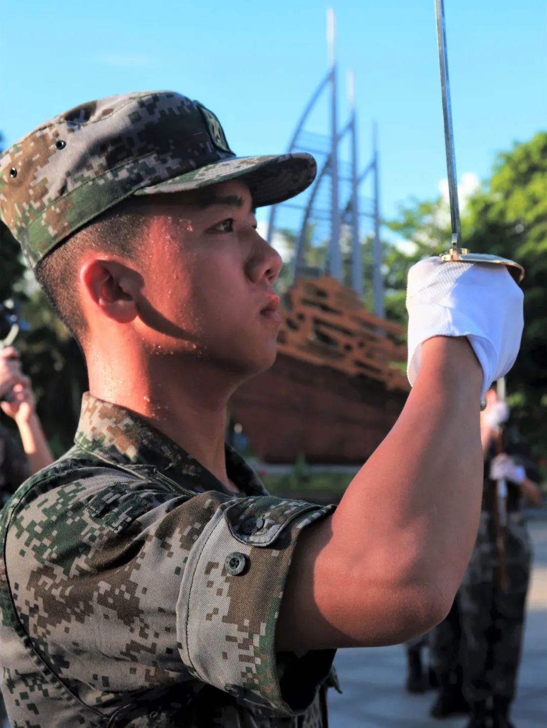 晨曦微露,挺拔的军姿已矗立多时