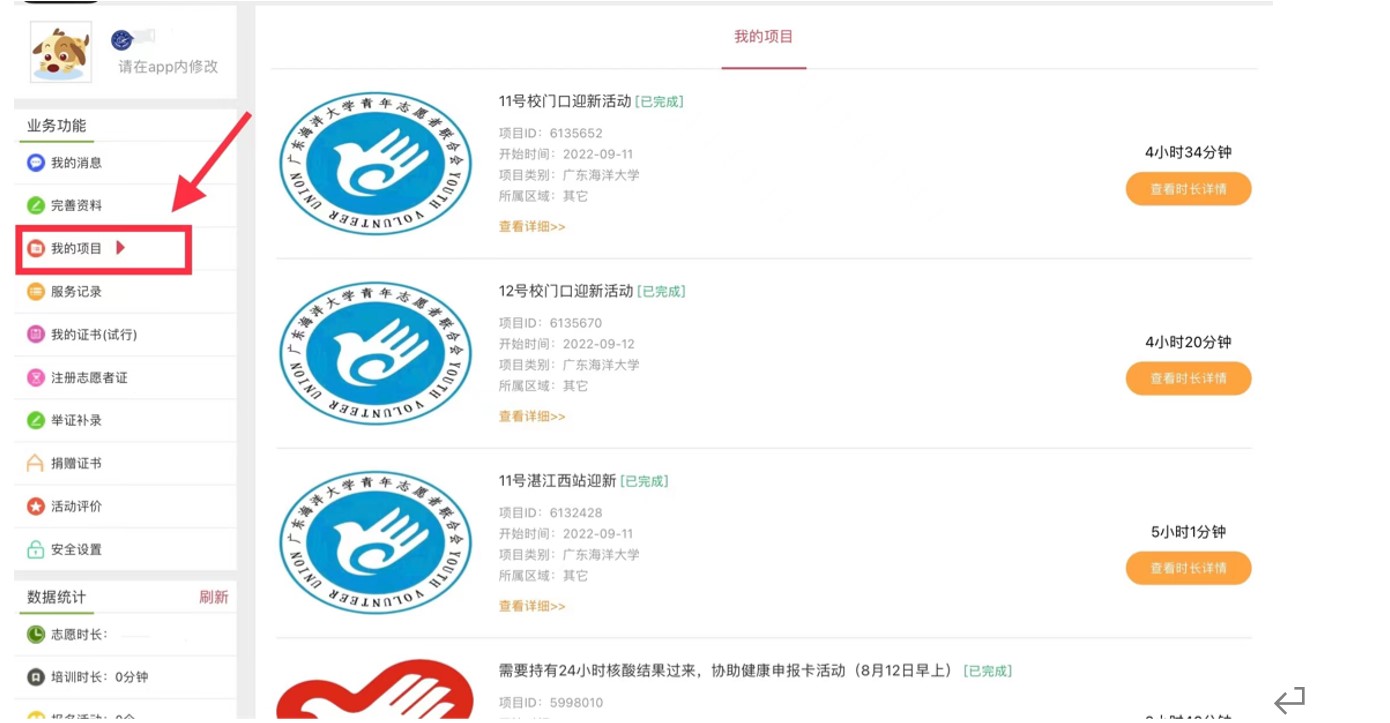 (三)认证材料需为i志愿APP的服务记录截图或i志愿官网“我的项目”截图(电子版)。